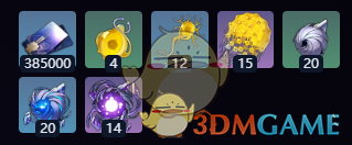 385000信用点、4思量的种、12末那芽苗、15阿赖耶华、20熄灭原核、20微光原核、14蠢动原核