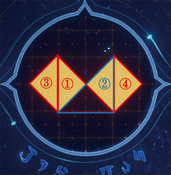 依次选择:① 左侧大三角形 → ② 右侧大三角形 → ③ 下方小三角形 → ④ 上方小三角形