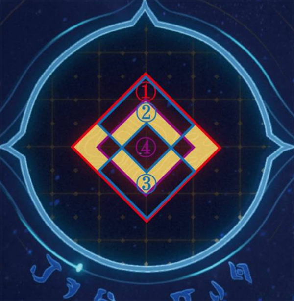 依次选择:① 中央大菱形 → ② 内部上方小菱形 → ③ 内部下方小菱形 → ④ 内部中间小菱形