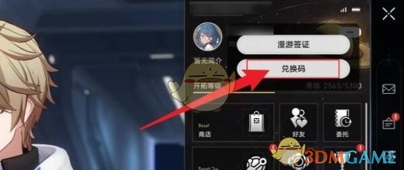 3、最后在弹出的弹窗中,点击兑换码,输入兑换码点击兑换即可领取奖励;