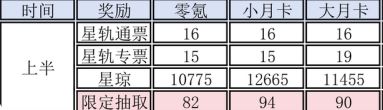 3、大小月卡:19650星琼、24*星轨普票、20*星轨专票