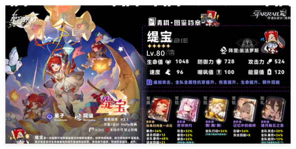 辅助方面能够为全队覆盖稀缺的全属性抗性穿透增益,并通过终结技展开结界,持续期间内对敌方添加不易被稀释的易伤效果;