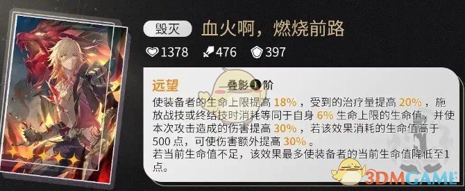 释放战技或终结技时消耗自身一定比例生命值,并使本次攻击造成的伤害提高30%,与万敌技能机制完美契合 。