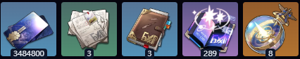 1、信用点(3484800)、旅情见闻(3)、冒险记录(3)、漫游指南(289)、命运的足迹(8)。