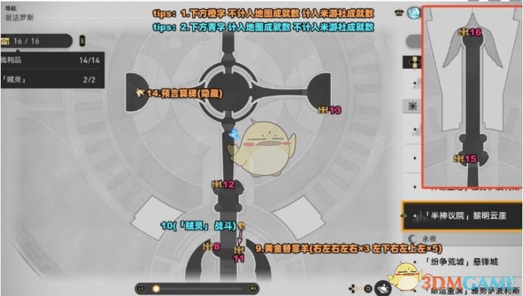 1、半神议院黎明云崖共有22个宝箱,部分需要完成解密才能获得。