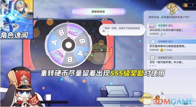 3、可消耗重转硬币重新抽取结果,尽量将其留到出现SS/SSS级别奖励时使用。