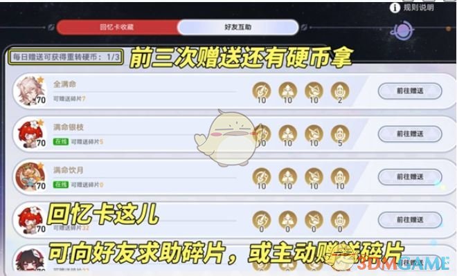 1、界面左下角回忆卡,点进去有好友互助功能。