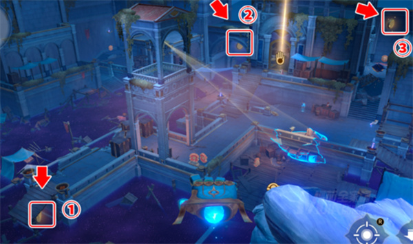 打开地图,寻找“眼睛”图形符号位置(机关附近)。