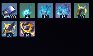 信用点×385000、炽情之灵×4、星火之精×12、焚天之魔×15、预兆似有若无×20、悲鸣由远及近×20、哀叹漫无止息×14