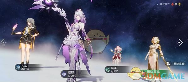 2、需要四名带上能召唤出忆灵角色,分别是记忆主角、遐蝶、风堇、阿格菜雅