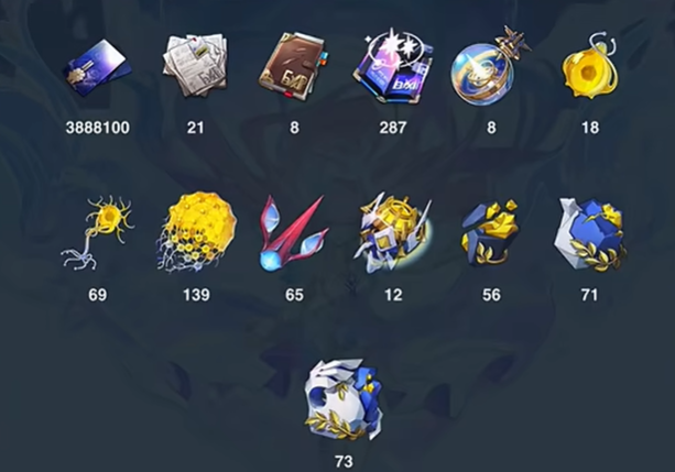 9→10级:命运的足迹 ×1、阳雷的遥想 ×1、阿赖耶华 ×13、信用点 ×240,000。