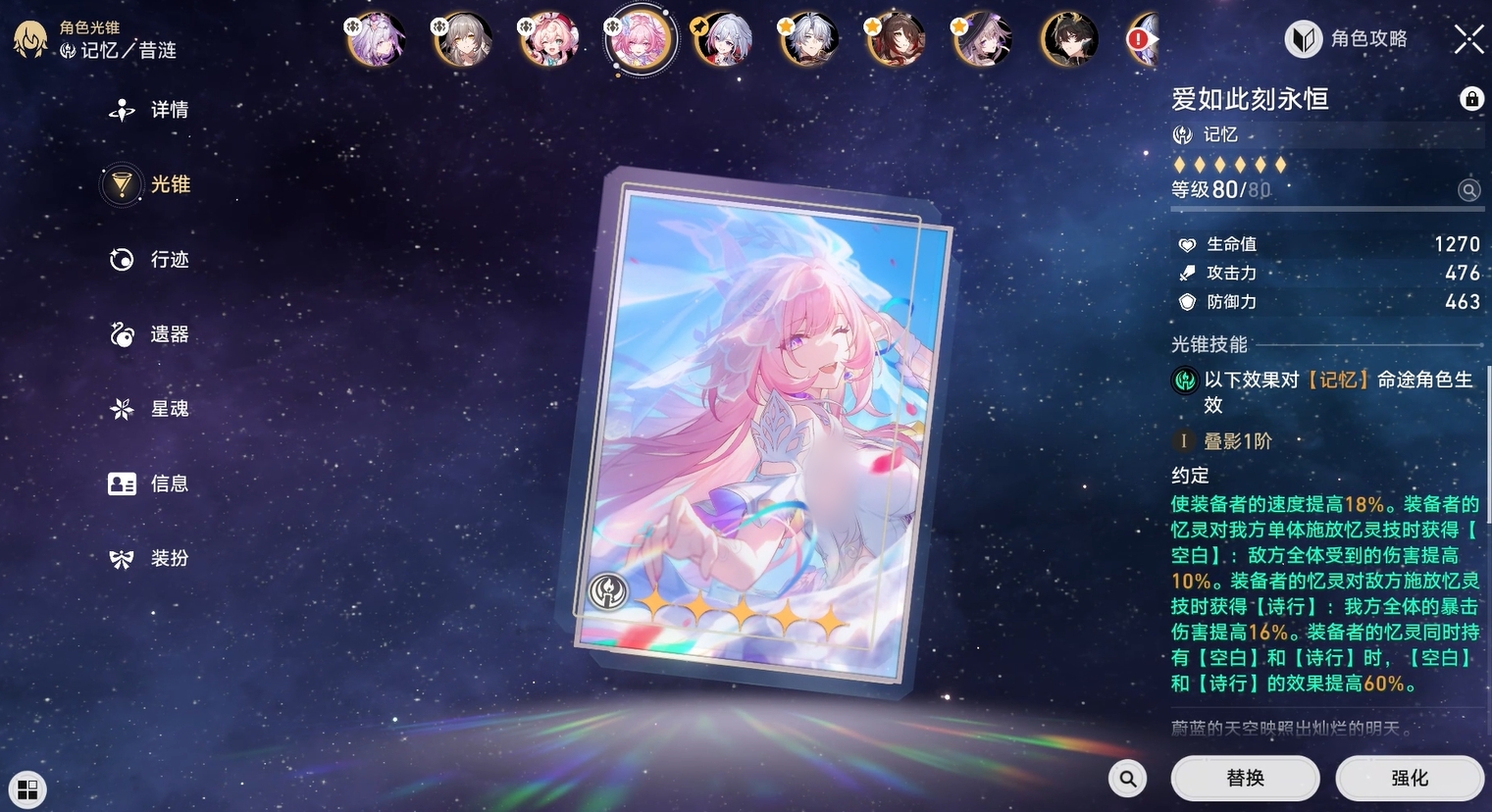 实战中,昔涟最适配的队友自然是遐蝶、长夜月和风瑾,其次是白厄、星期日、丹恒腾荒。若玩家有二命昔涟,那她在非黄金裔队伍里也能快速开出大招,可进入大多数主流队伍承担辅助位。配装上,优先考虑昔涟专属光锥,其次是模拟宇宙记忆光锥,遗器可用救世主四件套搭配翁法罗斯两件套,衣服选爆伤,鞋子选速度,球选生命或冰伤,链子选生命百分比,副词条优先考虑速度,争取将昔涟速度提至180吃满被动,其次考虑生命百分比和爆伤词条。