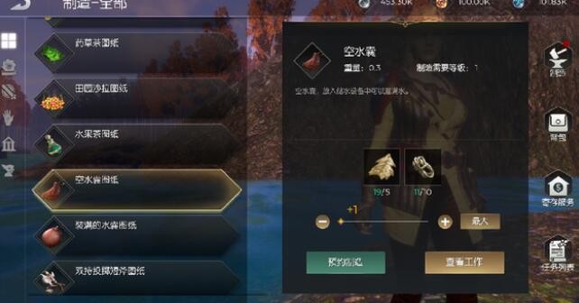 1、分解水囊,玩家按照新手引导任务可以学会造出空水囊,空水囊可以存贮5个水珠,可以在水源地装满。我们造出10个水囊,在河边装满,然后分解后一次性就能获得50个水珠,很方便。