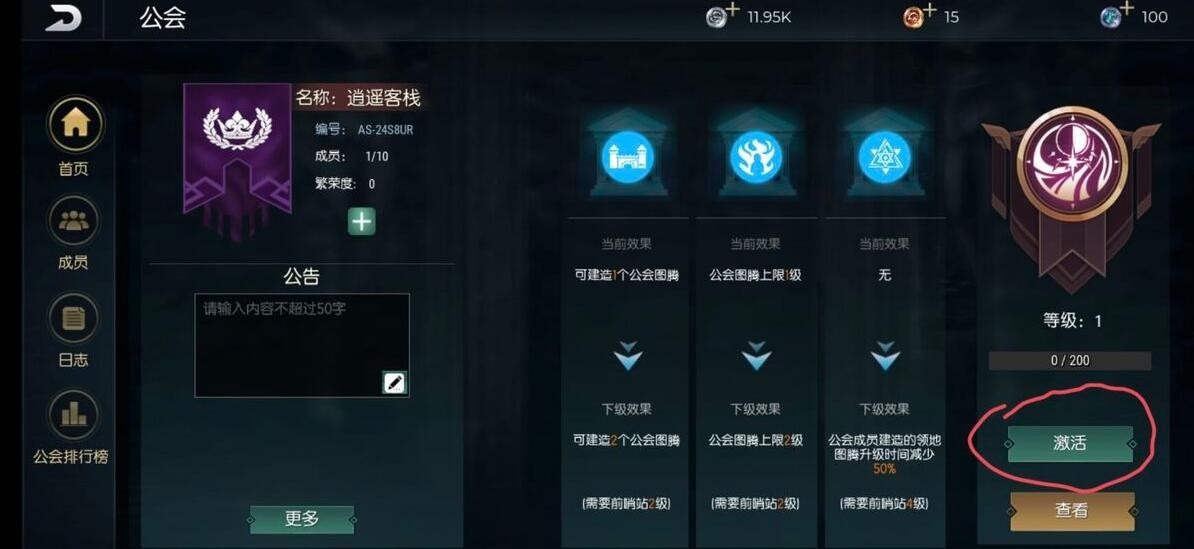 然后用20金币激活前哨塔,这样就可以放置公会图腾了