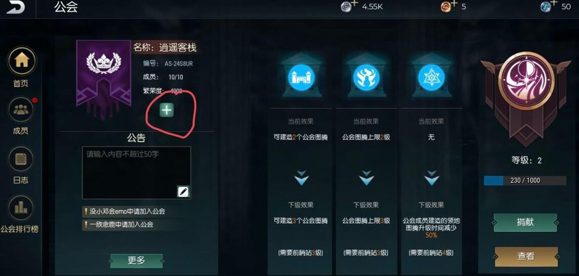 人数扩建到达10个人后,想要进一步招人需要先扩建公会