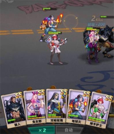 英雄试炼第六章第四关:狼人-兔女郎-双枪玫瑰-地狱火-拉手护士