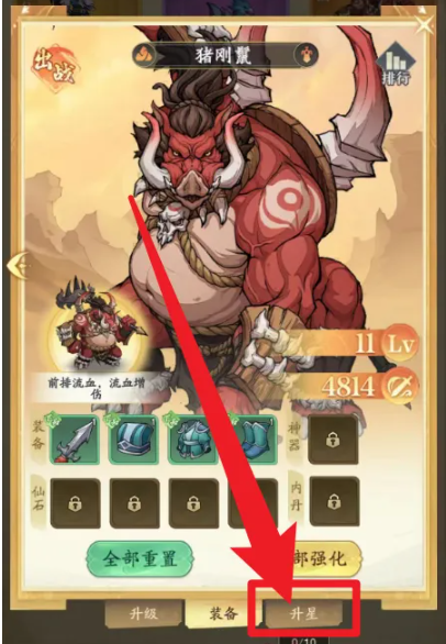 九州异兽记猪刚鬣怎么升级升星?这个是在异兽界面进行的,异兽界面当中点击【猪刚鬣】之后,在下方后又【升级】【装备】【升星】,然后选择对应的选项操作即可!