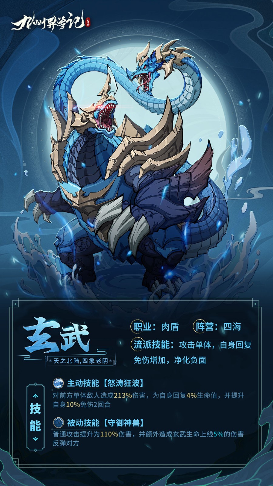 《九州异兽记》是一款可以在山海经世界里捕捉和培养异兽的卡牌策略手游,游戏中玄武怎么样呢?下面是小编给大家带来的《九州异兽记》玄武技能图鉴介绍,感兴趣的小伙伴们一起来看看吧。