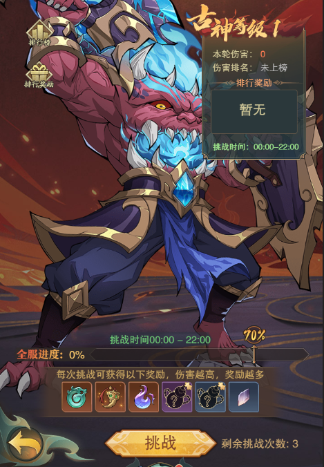 挑战次数:每位玩家每日仅可挑战3次,且不可购买挑战次数