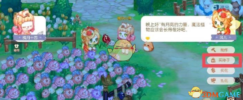 1、首先前往奥比斯山山脚,找到NPC风儿,和其对话,选择买种子,即可购买不同的魔法植物种子。