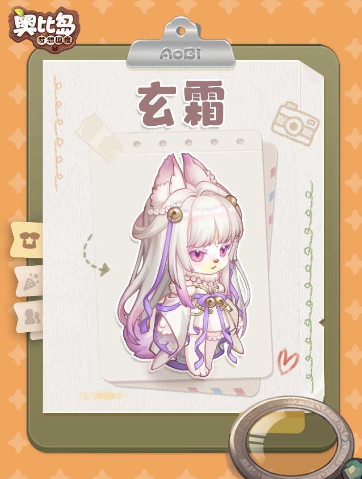 玄霜是一只在奥比斯雪山修炼的白狐妖,由于力量低微,所以她需要长居雪山,用雪山的冰寒之力维持自己的妖力。直到修炼至一定阶段时,且修为稳定了,才能离开。但她对于世上的许多事情都感到好奇,所以会跟来到雪山跟奥比们聊天,问一些自己想要知道的问题,而那些帮助玄霜解惑的奥比们也会获得玄霜的感谢礼物。