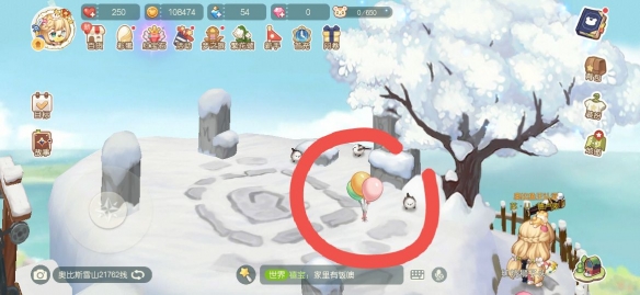 奥比岛明信片第四天奥比斯雪山那里,前往山顶,点击彩色气球。