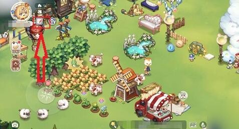 2、玩家点击拜访之后就会进入到好友的家园,这时玩家需要点击左上角头像旁边的【留言板】。