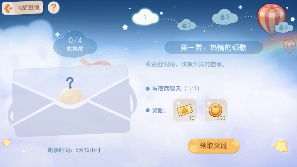 点击主页最上方的梦之旅可进入梦之旅任务界面,在下面有个飞船邀请函,点击即可进入任务。