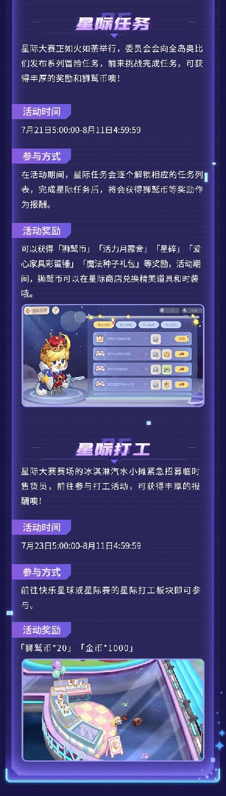 在活动期间,星际任务会逐个解锁相应的任务列表,完成星际任务后,将会获得狮餐币等奖动作为报酬。