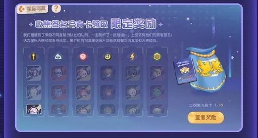在星际写真活动收集签名写真卡可以领取限定奖励:「星际写真展示架」、「大赛披风」。