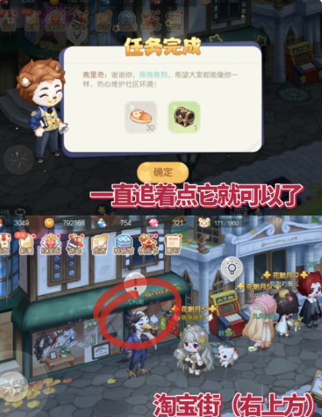 点击对话后一直追着它互动就可以完成啦。