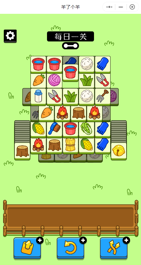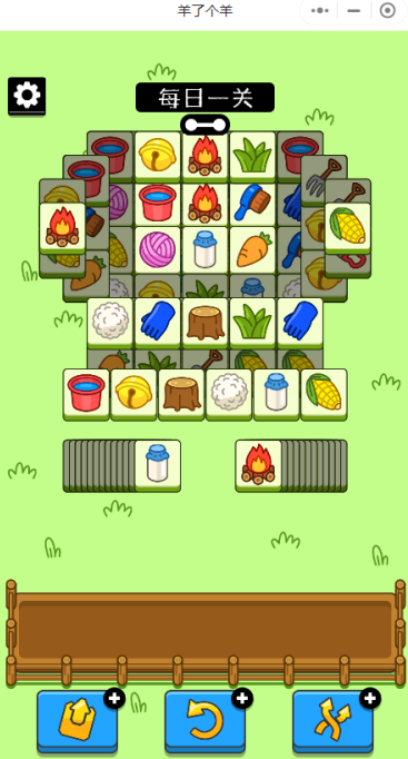玩家们在点击上方卡牌后卡牌会下移到底部的框中,栏框内一共可以储存7张卡牌,当有3张一样的卡牌时将会消除,如图中点击上方的羊毛球则可以达成三消。