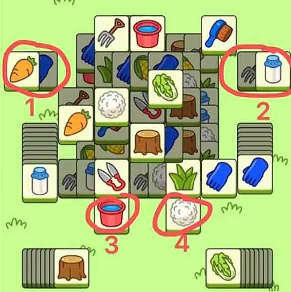 3.注意下图圈出来预留的6个位置(1.2.3.4.5.6)留到最后,玩一局就能过关!!切记盲盒牌剩最后2-3个留着,最后能保命!!!道具只需用移出,在不行再用复活,别的不需要。