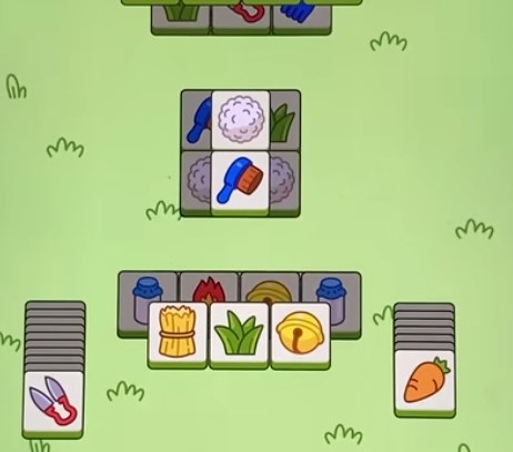 最下面盲牌区的【牌】前期可以配合【主消区】的牌来进行三消,这样就不会将格子卡死,清理到后面会留下一两张的牌。