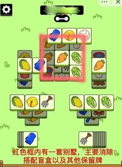 红色虚线框内卡牌尽量保留,特别是最后一两层,以及盲盒留三四张到后面,至少要留到正方形消一部分才能动。