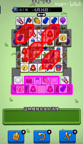 2、这种小楼梯非常好消除,玩家从 主楼区的上方位置一排一排往下拿就可以,只要注意均匀一点就可以很好的消除;
