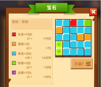 3、方案3:生命红*1+速度橙*5+攻击蓝*11+防御绿*8;