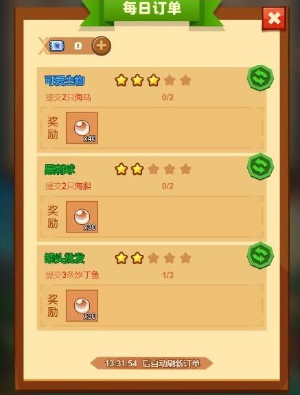 2、我们需要钓到订单里面需求的鱼和要求的数量,达到之后就会给到30-40的珍珠。