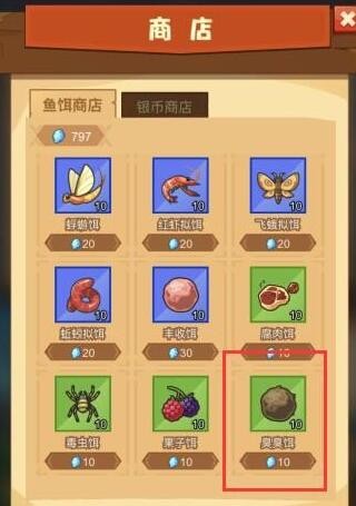 2、在商店-鱼饵商店中购买臭臭饵,在最下面,滑动下来就可以看到