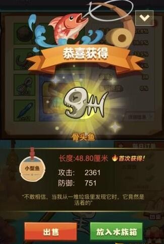 骨头鱼:属于小型鱼的一众,体长一般在20cm以下,拥有较高的攻击以及防御力。