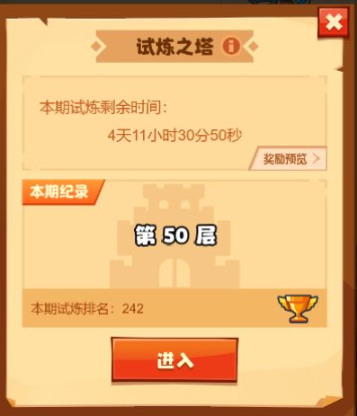 战利品的下效果仅在试炼之塔内才可以生效。根据玩家每一个星期最高到达的层数排名,相同层数根据时间先后排序。