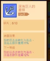 3、我们反击转换为连击效果的最关键的装备就是这一个神器--深海巨人的重锚,我们可以从图中看出这样神器的效果是“将你的反击效果转化为为连击效果,并且连击额外的提高百分之十一的属性”。