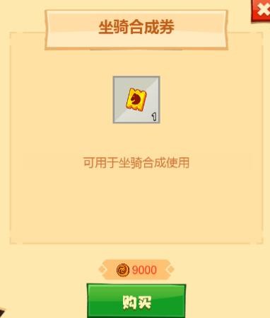 2、使用游戏币在游戏商店中购买坐骑合成卷(9000的骑士团币一张)。