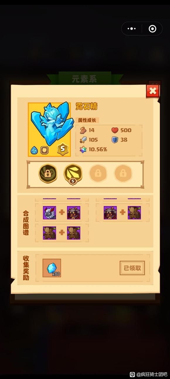 疯狂骑士团游戏中玩家们可以通过合成各种宠物来获得更高级的战宠,战宠的品质等级由一般、常见到超神话,用D-SSS来表示。而品质的晋升则依靠同品质宠物之间的合成来完成。其中宠物霓石精怎么合成呢?下面是小编给大家带来的《疯狂骑士团》霓石精合成图鉴分享,感兴趣的小伙伴们一起来看看吧。
