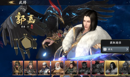 第二个便是郭嘉,郭奉孝。这个平民玩家也不容易获得,需要1k的累充才可以获得,资质20,也是很好的角色。