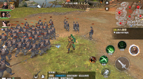 1)控制技能【怒龙冲天】:关羽向前冲锋,对沿途敌人造成伤害并附带击退效果,冲锋结束后提刀击飞前方敌人。