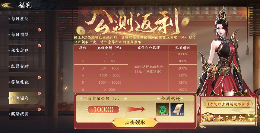 Q:上次测试的充值返利怎么哪里领?