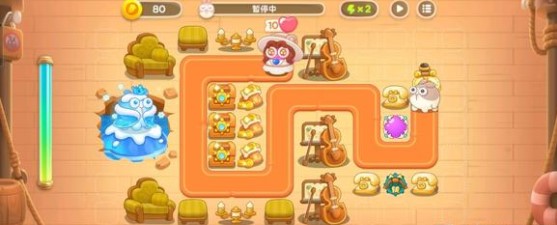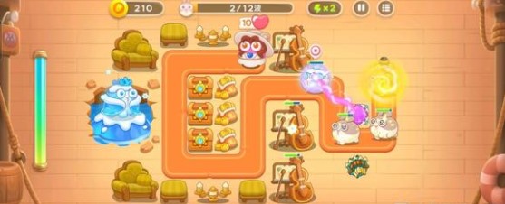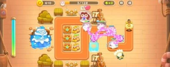 2.二、三波各会释放一个冰兔。冰兔冰冻范围覆盖攻击炮塔时可以先把它打残血,然后攻击左侧的道具,等到冰兔走远后再补充伤害。左侧的道具打开后可以放置一个魔法球防止漏怪。注意开局不要放减速炮塔,否则不好控制冰兔死亡的地点。