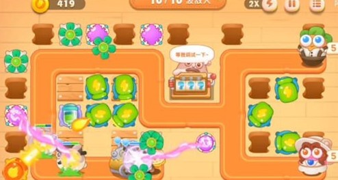 3.可以看到运气不算太差的情况下,维克兔给出的炮台都是不错的,而且这一关其实怪不算特别密集,建议在用瓶子炮防守好的情况下再去玩小游戏,这样可以保证不会漏怪。
