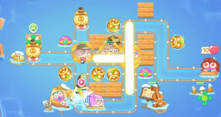 2、中期我们还得依靠水雷塔来消灭敌人,在消灭兔兔们的同时我们还要尽可能多的清图;
